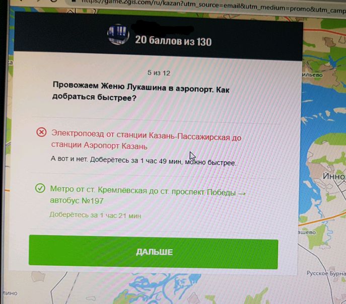 Допустим, если человек опаздывает на рейс, на такси денег нет, то с пересадками вы ему предлагаете проехать за 1 час 21 минуту часа от Казани до Аэропорта.